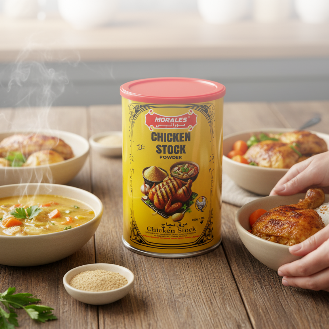 Morales Stock Powder is a convenient and versatile ingredient used to enhance the flavor of various dishes. It is made from concentrated meat, vegetables, or seafood that have been dehydrated and ground into a fine powder.